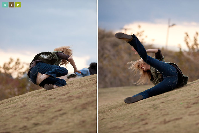 Remember that I said they were adventurous? They were totally up for rolling down the huge steep hill. Bo rolled the wrong way but I totally got Rebekah plummeting down. So fun. And only a grass burn on her hand. So worth it. 🙂