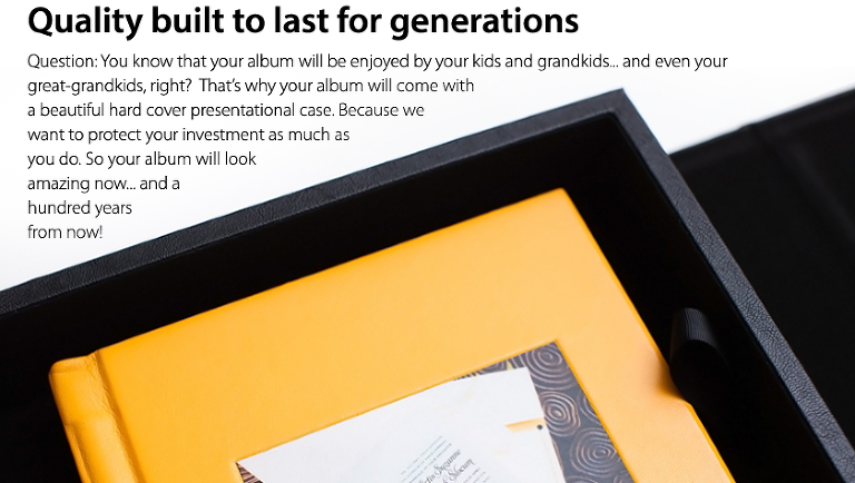 You know why the books you order online are so cheap? That’s because ever material put into that book is super cheap. That’s how they still make a profit. The paper, ink, cover, binding… everything… aren’t designed to last a long time. Soon, the pages will start falling out and the color on the pages will begin to fade. Your professional wedding images… the ones you invested a lot of money in… should be treated differently, don’t you think?